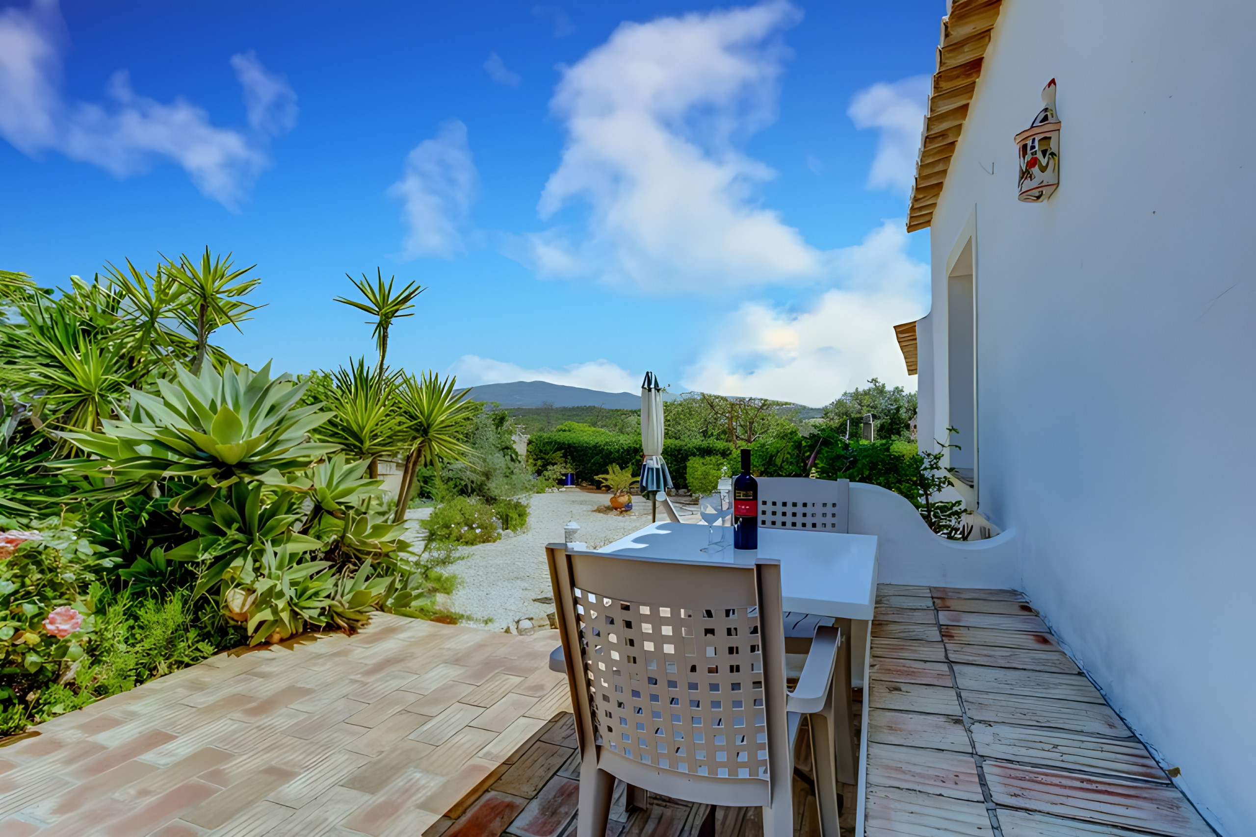 En el exterior, el apartamento revela todo el encanto de la Quinta Velha: disfrute del jardín botánico, relájese en la terraza con mobiliario de jardín y sumérjase en la piscina compartida, una verdadera invitación al ocio en los días calurosos del Algarve.