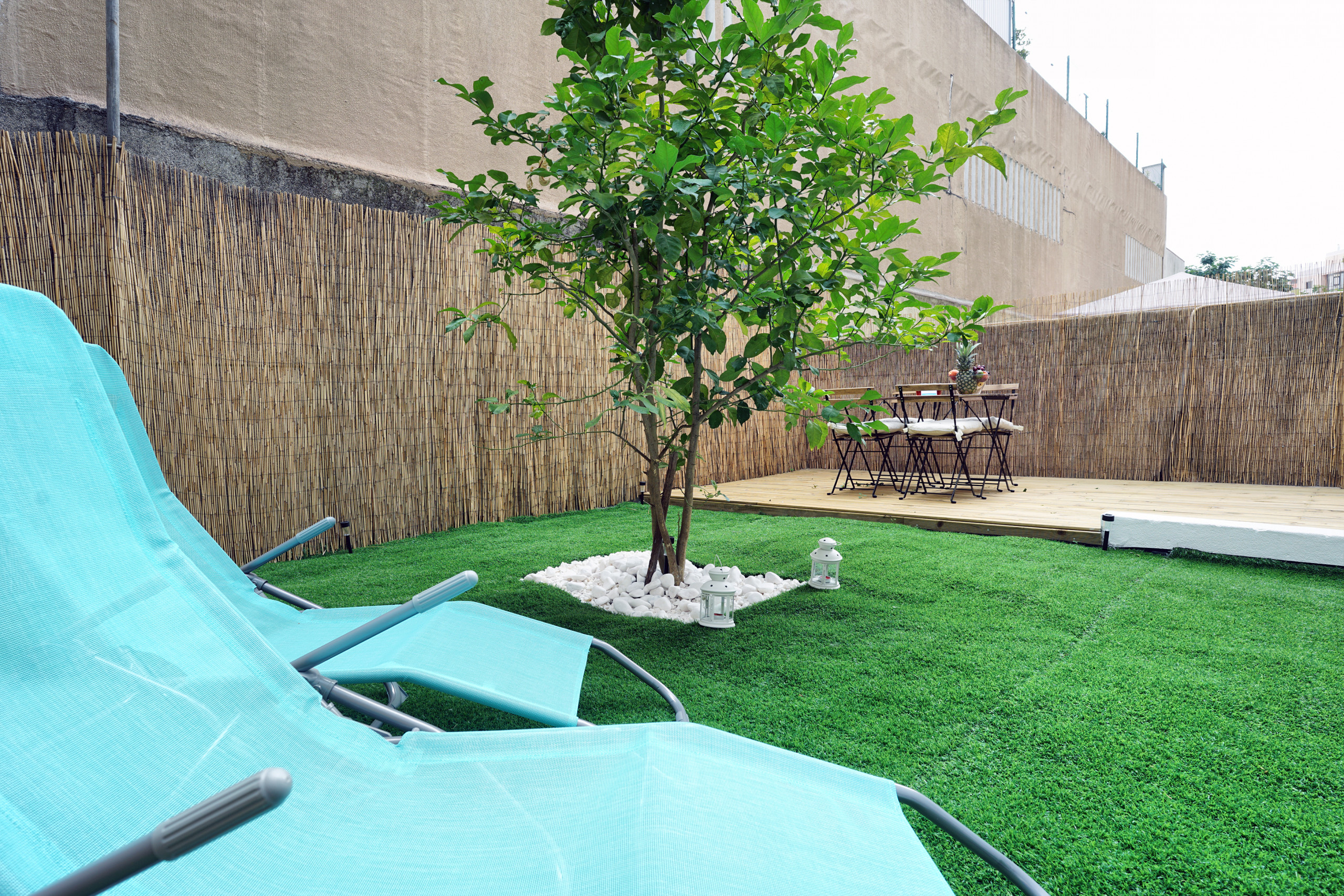 - Piacevole giardino con tavolo, sedie e 2 lettini